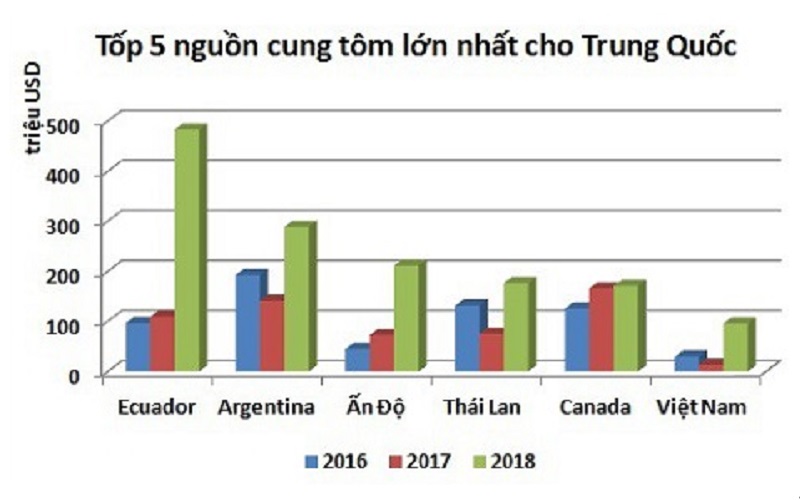 Năm 2018, Trung Quốc giảm mua vào vì tồn kho nhiều từ đầu năm và giá tôm giảm nên thị trường này tạm dừng trước khi thực hiện các đơn hàng lớn. Hơn nữa, Trung Quốc ngày càng siết chặt hoạt động xuất nhập khẩu qua đường tiểu ngạch nên hoạt động xuất nhập khẩu tôm sang Trung Quốc cũng có phần bị ảnh hưởng.