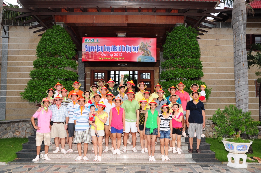 MDI’s outing gradually becomes a point of characterized traditional culture that can’t be missed. It is a opportunity for the MDI families from North to South gather togheter, have a rest and fun as well as exchanges to enhance solidarity and consolidate the employee’s belief for the MDI’s development. This is a wish of Mr. Tran Binh An, President and Board of MDI Directors. The 2012 is a fluctuant and difficult year to MDI company. However, the value of our company’s ethical principles is still kept intact by our great leaders. This year’s holiday was held in a period from 6th July to 9th July on the beautiful beach in Quy Nhon city. Inspire of the long distance, all of the MDI staffs and thier families from North to South mustered at this place with full of zeal and enthusiasm.