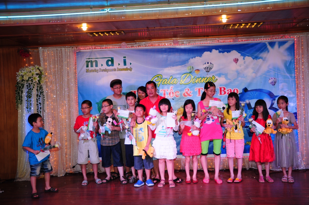 The party was more exciting when there were awards for excellent pupils - the staff’s children - in the year 2012 as well as the Lucky Drawing game for all the children there. Although the gifts were small, but they expressed the interest and encouragement of MDI board to the staffs and their families.