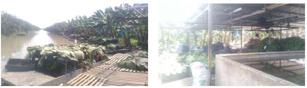 - Thu hoạch chuối từ nông trại, vận chuyển bằng bè