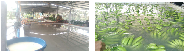 - Chuối sau khi được chọn lựa kỹ càng, sẽ được ngâm rửa trong bể tiếp theo