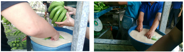 - Chuối sau khi rửa sạch sẽ được ngâm trong dung dịch Frutcoat AC-36 FDA 25%