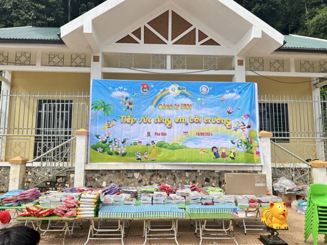 Trong hành trình ấy, chúng tôi đã trao tặng những trang thiết bị thiết yếu cho việc dạy và học, những món đồ chơi nhỏ bé nhưng đầy niềm vui như tivi, thú nhún, cầu trượt, xích đu, giá đựng đồ dùng, sách giáo khoa,... Mỗi món quà là một niềm hy vọng, một sự sẻ chia với mong muốn giúp các em có thêm động lực trên con đường học vấn. Không chỉ vậy, chúng tôi còn mang đến 73 phần quà, từ những chiếc cặp sách, đôi ủng, bộ đồng phục đến những chiếc bánh kẹo ngọt ngào, tất cả đều chứa đựng tình cảm và sự quan tâm sâu sắc.