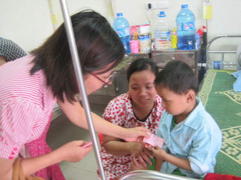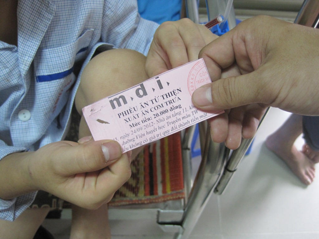 Từ ngày 24/9-28/09/2012 Đoàn từ thiện của MDI đã phát 1.284 phiếu ăn cho các bé ở Khoa bệnh máu trẻ em và Đơn vị điều trị Thalassimia – Bệnh viện huyết học truyền máu TW.